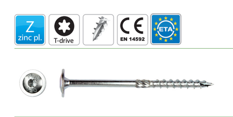 Houtschroef Tellerkop Verzinkt 8 x 340 mm TORX 40 per doos 50 stuks ETA