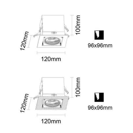 Inbouwspot kantelbaar vierkant Recessed/trimless 50mm zwart mat