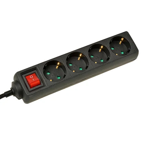 Stekkerdoos met schakelaar zwart 4-voudig met kinderbeveiliging - 5.0 meter