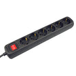 Stekkerdoos met schakelaar zwart 6-voudig met kinderbeveiliging