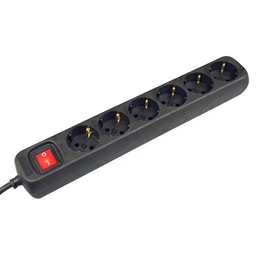 Stekkerdoos met schakelaar zwart 6-voudig met kinderbeveiliging - 1.5 meter Wordt geleverd vanuit centraal magazijn