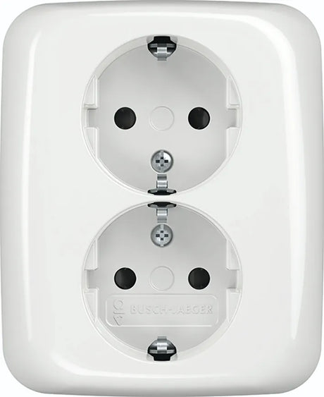 Busch jaeger Wandcontactdoos dubbel + Randaarde Wit