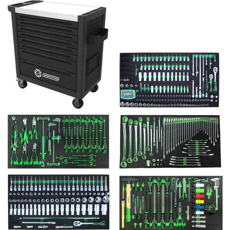 Gereedschapswagen met 7 schuifladen en 225 gereedschappen, bedrijfswagens