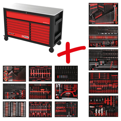 KS Tools Competition gereedschapswand incl RVS werkblad en gereedschapwagen