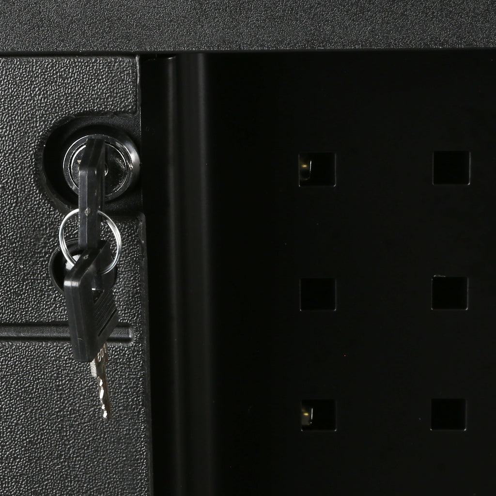 Meer ruimte! De professionele gereedschapwagen heeft zeven schuifladen. Twee schuifladen zijn bijzonder hoog en bieden zo ook voldoende ruimte voor boormachines en andere grote gereedschappen. Door de sleutelperforatie aan de zijkanten kan met de juiste houders extra opbergruimte worden gerealiseerd. Alle schuifladen zijn kogelgelagerd en ook bij volledige belading van 35 kg maximaal 100% uittrekbaar. Het bereiken van de gereedschappen is dus absoluut probleemloos mogelijk. Om te zorgen dat uw professionele gereedschapwagen niet kantelt, zijn alle schuifladen individueel vergrendeld en kunnen ze door het centrale slot worden afgesloten.