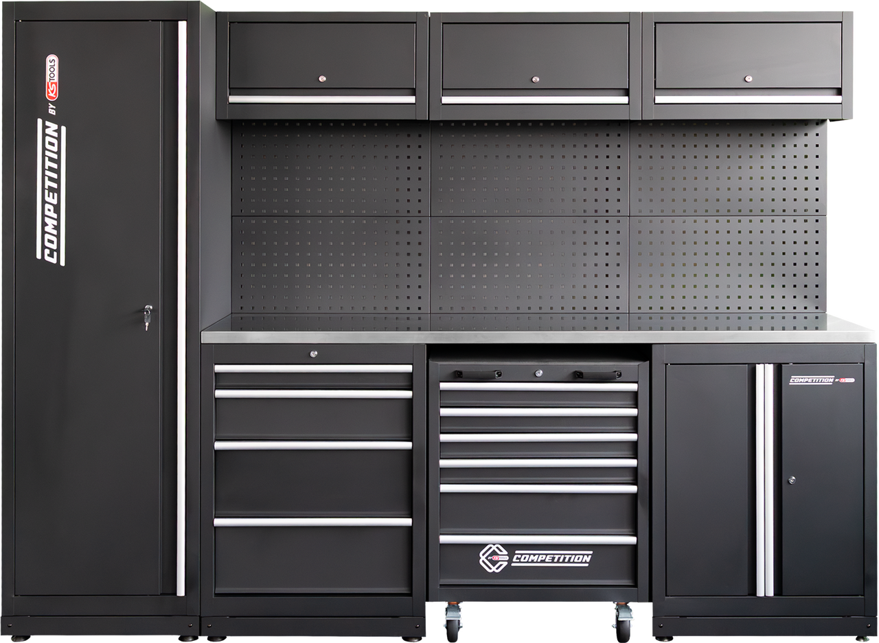 KS Tools Competition gereedschapswand incl RVS werkblad en gereedschapwagen