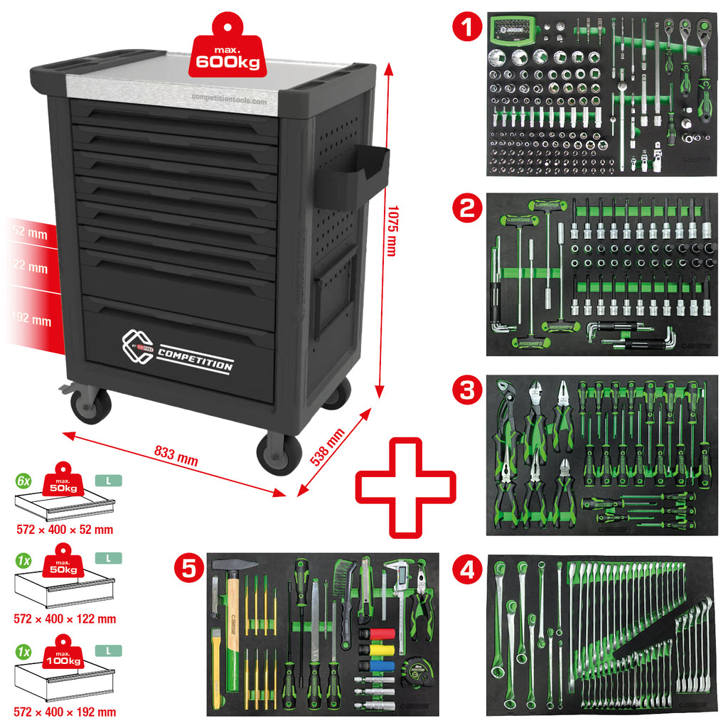 KS Tools Competition gereedschapswagen met 8 laden en 341-dlg Premium gereedschap gevuld Wordt geleverd vanuit centraal magazijn